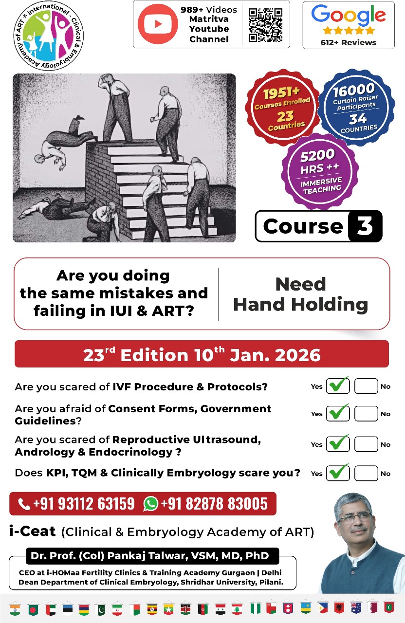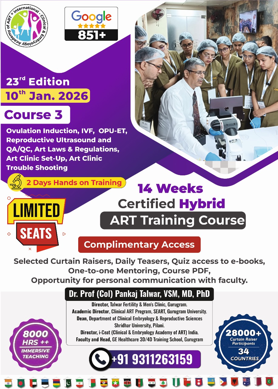i-Ceat a subsidiary of ARTech India is being initiated with heartfelt and authentic intention to help young embryologists & gynecologists to learn various ART techniques (Ovulation induction, OPU, ET, IUI, embryology, ICSI, semenology Cryopreservation) from teacher of teachers. The academy provides a podium for initiating and perfecting Assisted Reproductive medicine and embryology skills in you. Course Objectives And Aim Free Educational Downloads