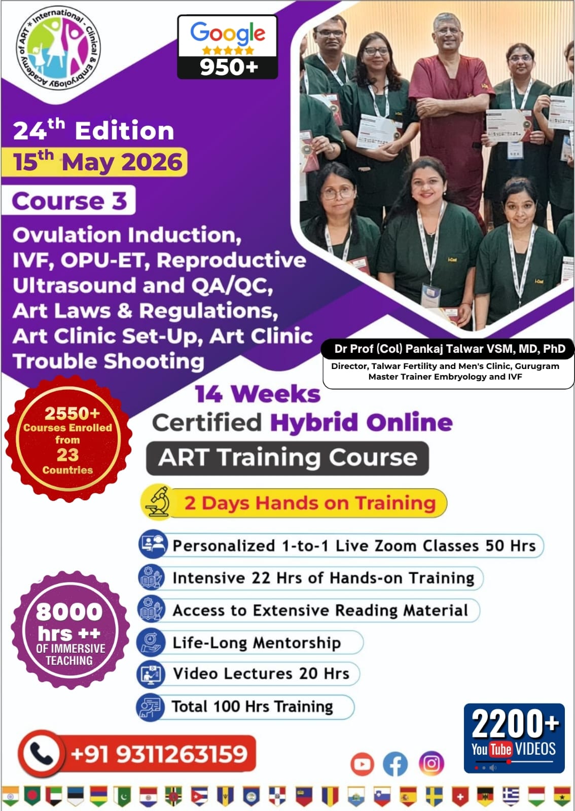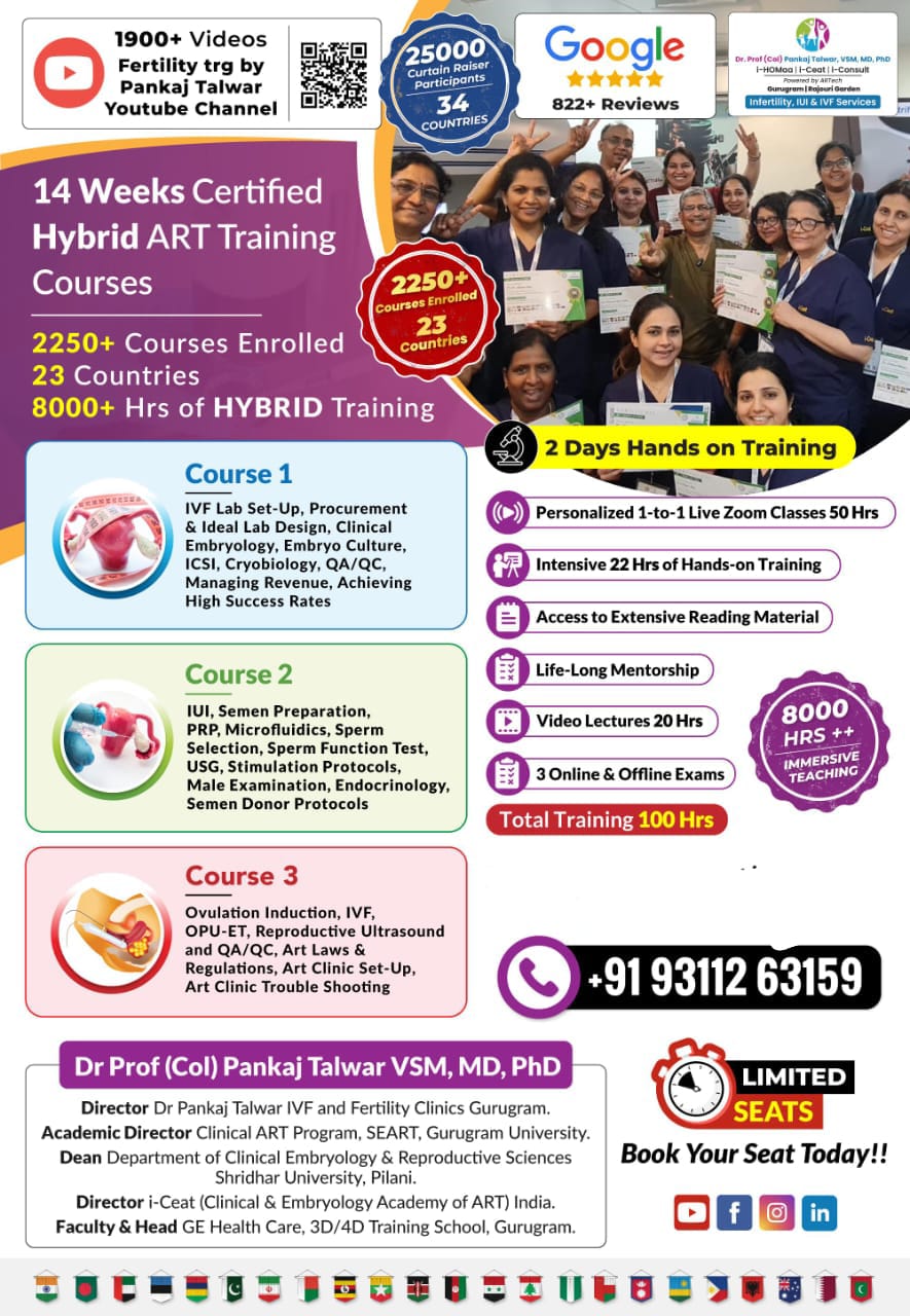 22+ hrs Extensive Hands on Training in IVF OT & LAB